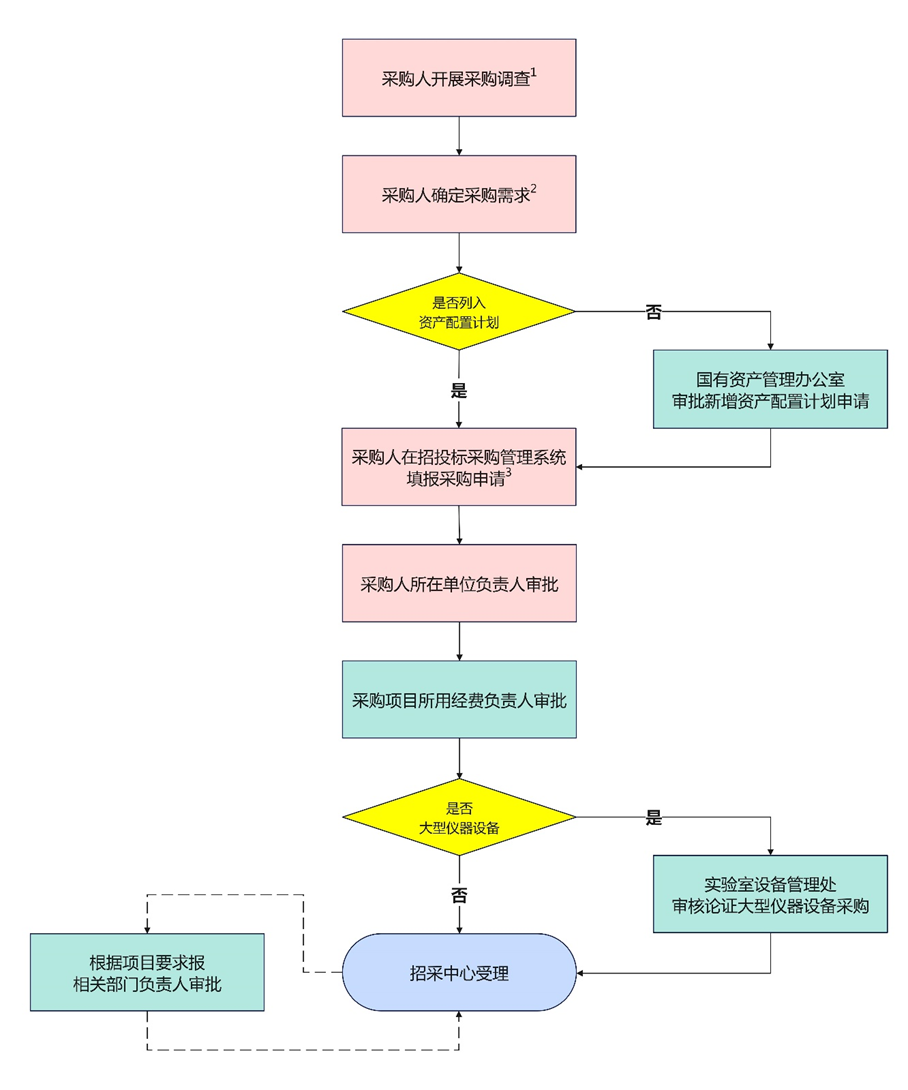 2.采购人确定采购需求应当明确实现项目目标的所有技术、商务要求。在实施采购时,通过招投标采购管理系统提交采购申请并填报采购需求,其中:学校统一采购限额标准(20万元)以上的项目还需提交《货物/服务采购需求书》作为立项材料。